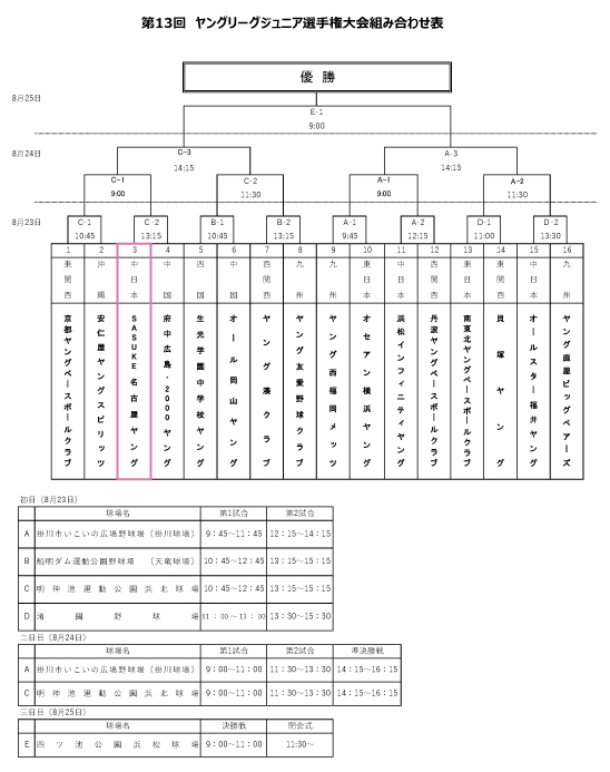 8月下旬より静岡で開催されます第13回ヤングリーグジュニア選手権大会の